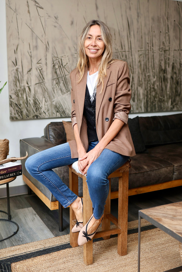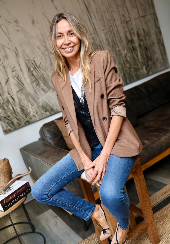 Básico Blazer color café latte . No se cierra . Botones son meramente estéticos . Hombreras delgadas . Botones negros . Tela opaca . Forro Satin . Excelente caída . Color neutro muy fácil de combinar