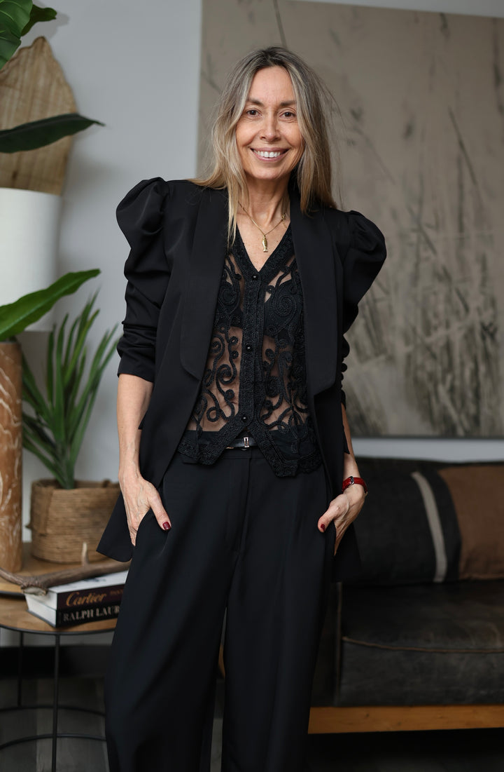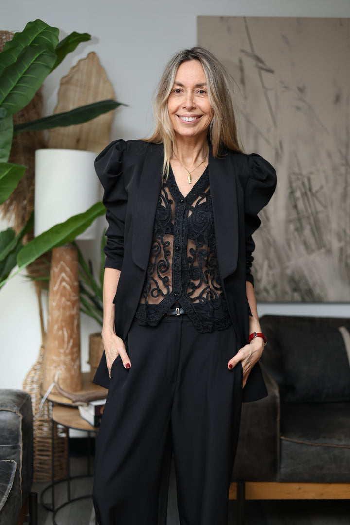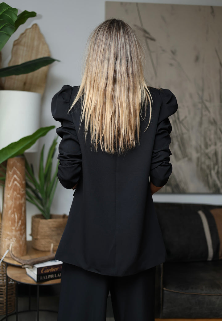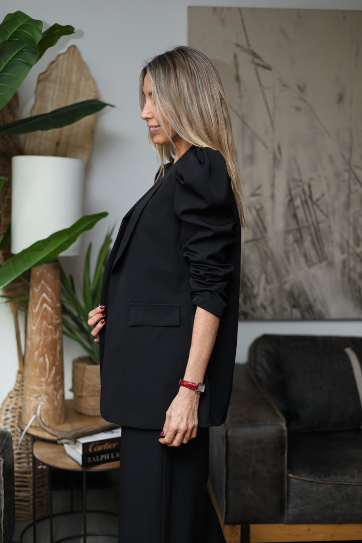 Blazer manga englobada negro . 90% poliéster y 10% algodón. Pasador para cinturón .