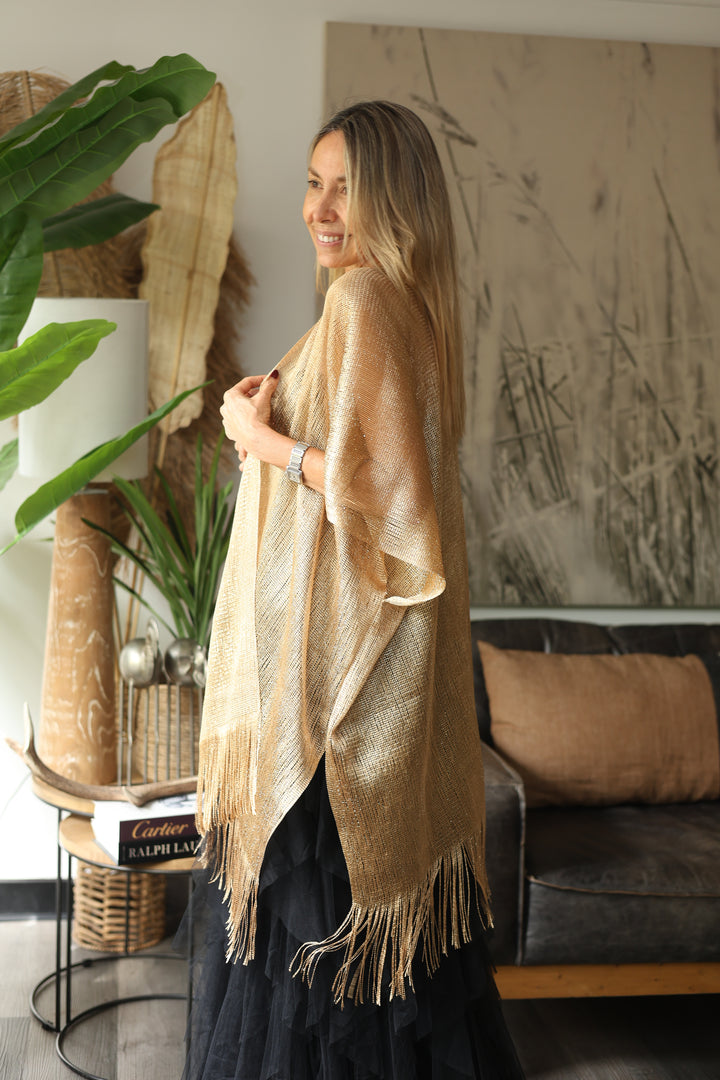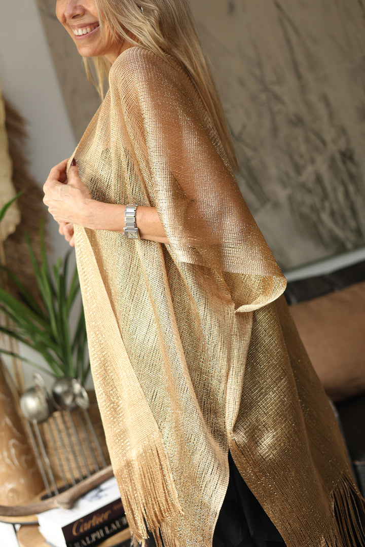 Tapado que podrás usar una y mil veces en los matrimonios y fiestas . Dorado y oversize.