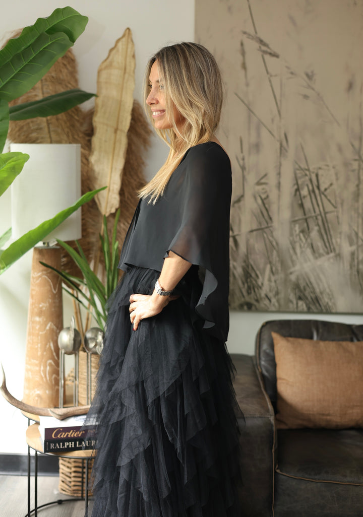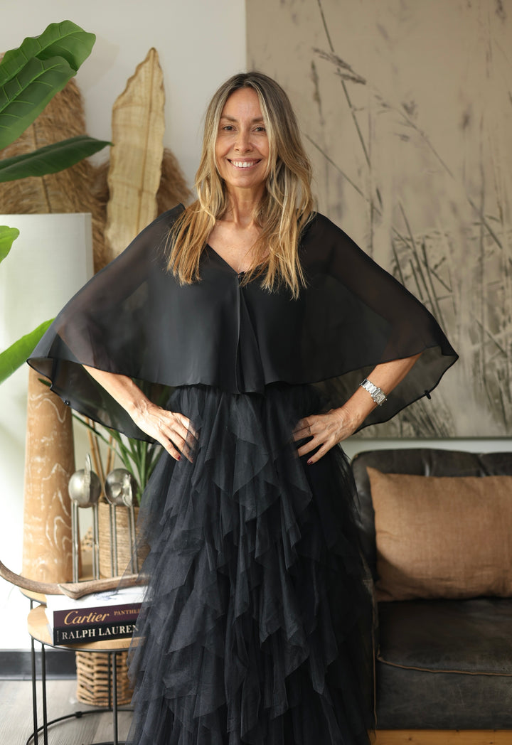 Liviano, y un gran aliado a ese vestido de fiesta . Negro . Oversize.